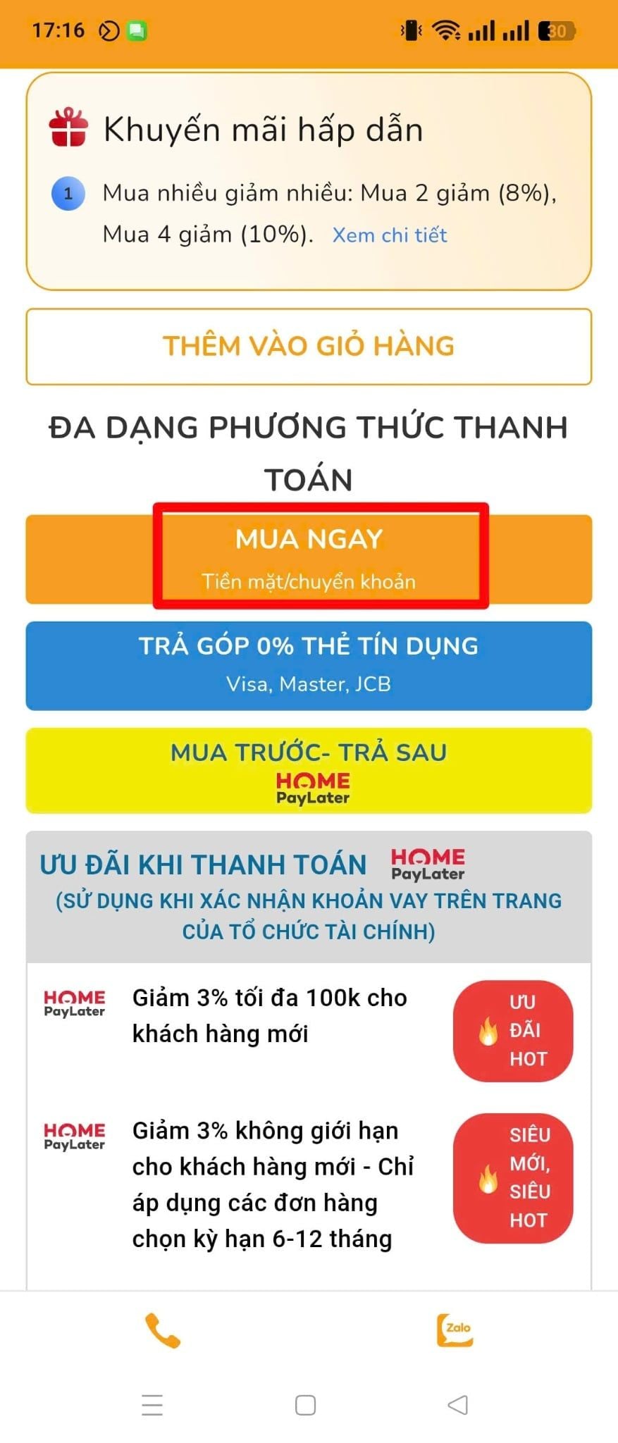 Bước 2: Chọn TIẾN HÀNH MUA NGAY