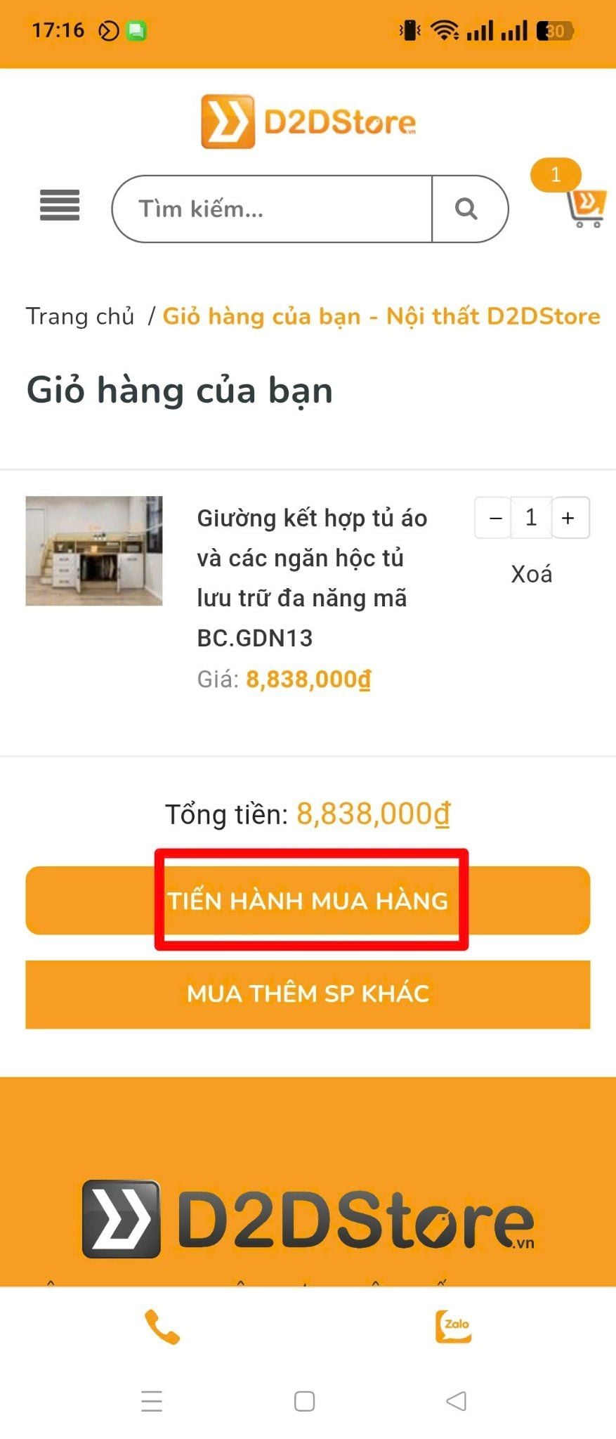 B2: Chọn TIẾN HÀNH MUA HÀNG