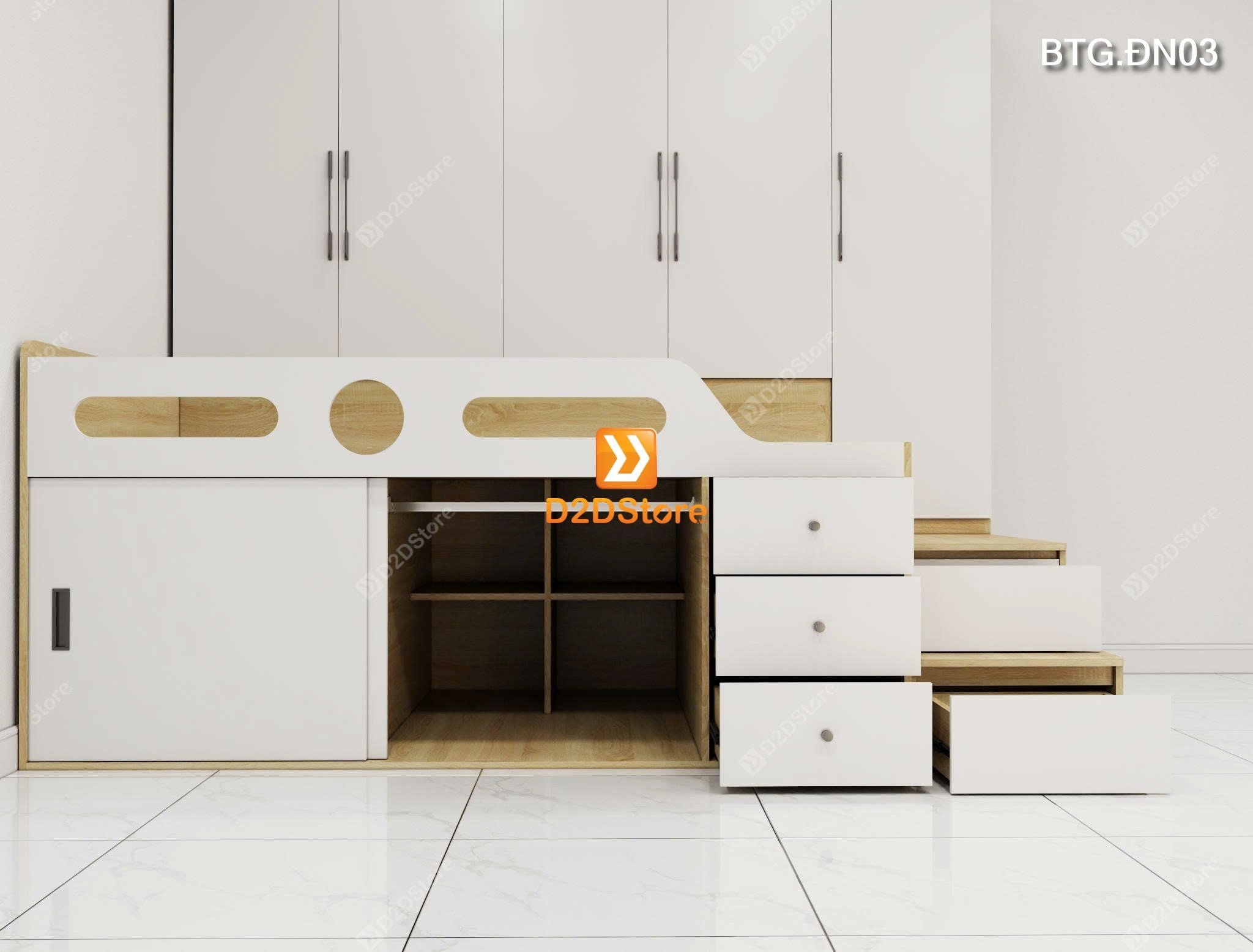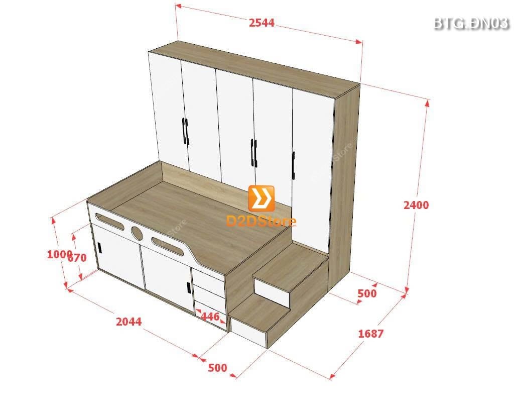 Đừng lo! Bộ tủ giường đa năng tại D2Dstore là giải pháp tuyệt vời cho bạn, không chỉ đáp ứng nhu cầu để ngủ mà còn tăng tích trữ đồ, mẫu giường ngủ đa năng này được thiết kế hợp lý đa công năng gồm giường ngủ, bàn học di động, kéo treo quần áo, hộc kéo, tủ kệ sách, tầng cầu thang tích hợp tủ lưu trữ, sẽ là sự lựa chọn hoàn hảo giúp tinh gọn không gian phòng ngủ cho bạn, vừa tiện nghi vừa tiết diện, vô cùng phù hợp cho phòng ngủ có diện tích nhỏ.