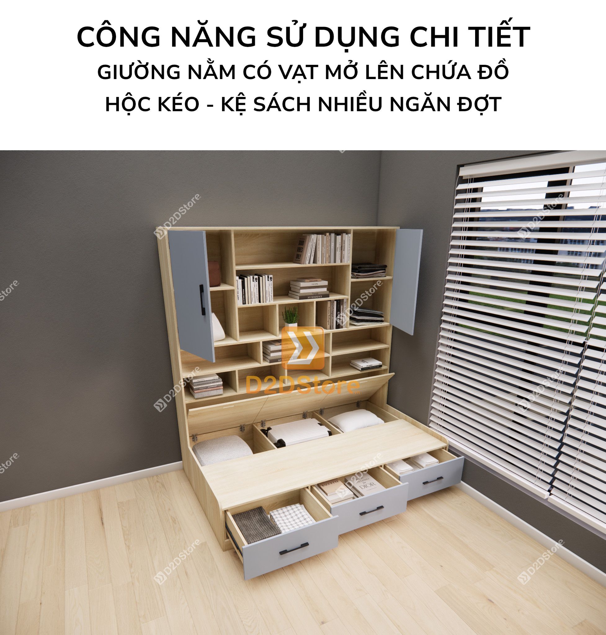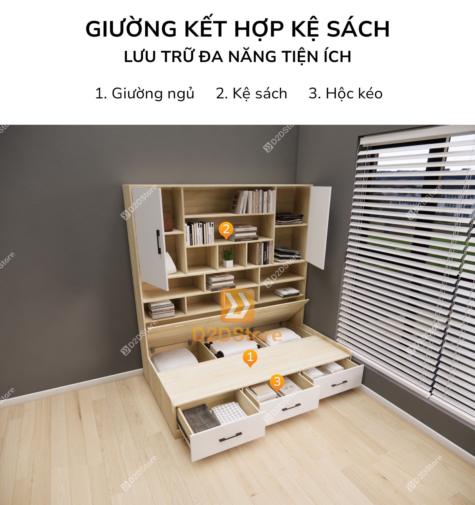 Giường ngủ kết hợp tủ kệ sách tại D2Dstore có thiết kế thông minh, đa năng giúp tinh gọn không sống của bạn.